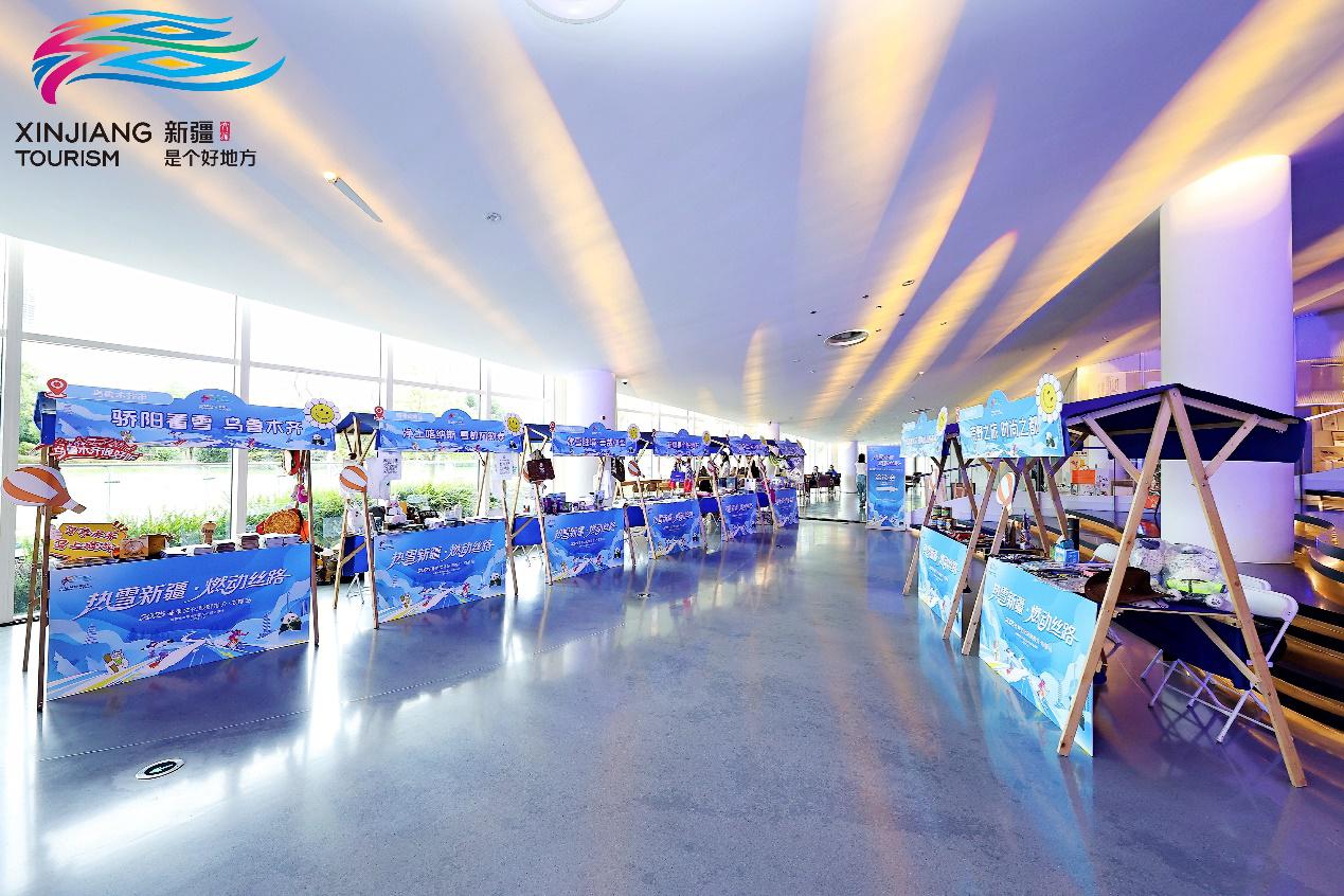 现场,来自乌鲁木齐、伊犁、阿勒泰、克州、克拉玛依、和硕县、喀什地区塔什库尔干等七大新疆地州县市的推介人,以情景化讲述结合视听画面,生动呈现出一幅立体而热情的新疆冬旅图景。并在现场设置各地文旅市集展位,带来艾德莱丝绸丝巾、疆风-乐器书签、守望天王毛毡笔、小矿工冰箱贴等极具艺术气息的文创展品。嘉宾在欣赏当代艺术展览的同时,亦通过影像、装置与讲述,感受新疆冰雪所承载的自然美学与文化厚度。现场通过文化、旅游与艺术的升维结合,有效提升了新疆文旅在高端客群与城市文化圈层中的认知度与吸引力。